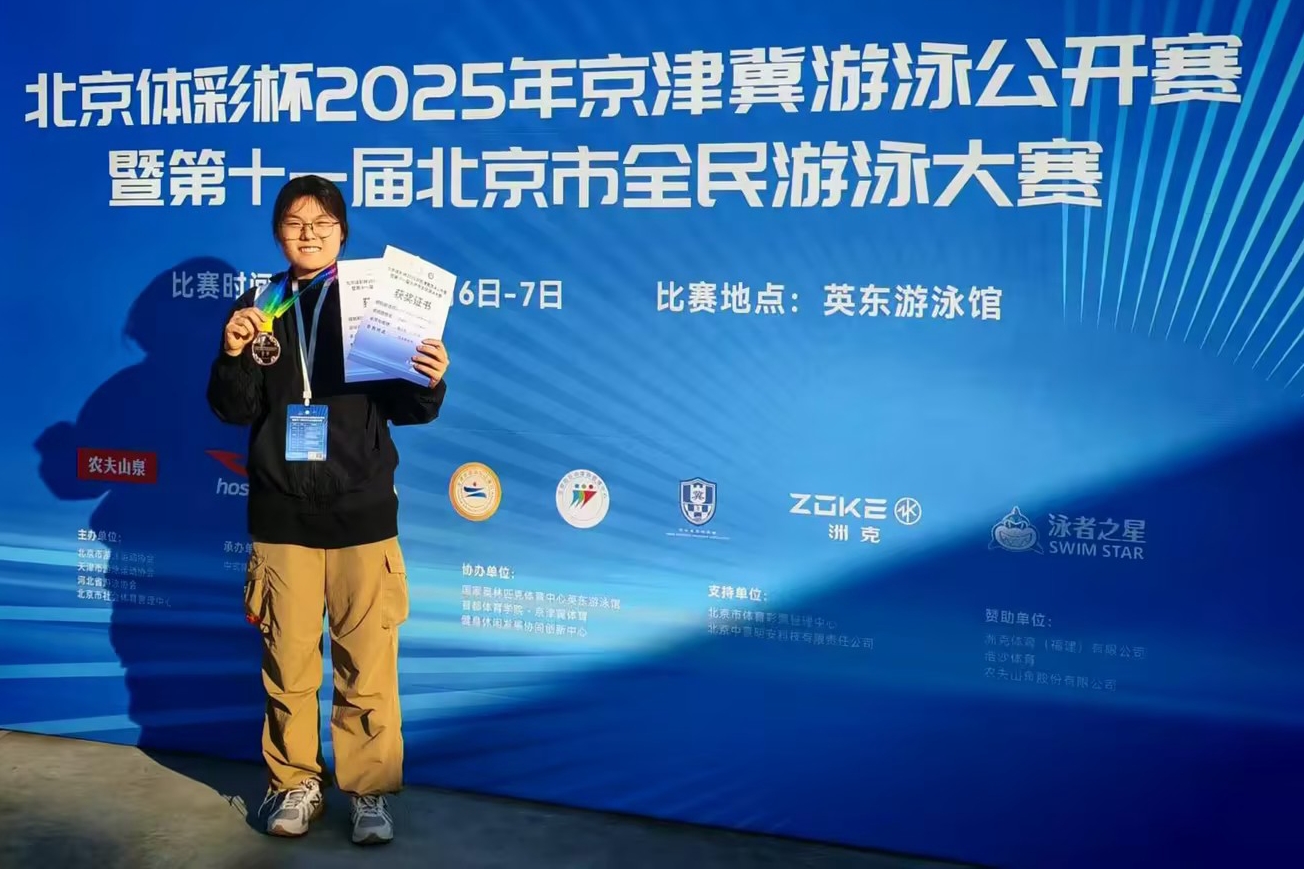 坚持运动的好习惯,也让田思圻重新拾起了儿时的热爱——游泳。在学校游泳馆里,她尽情畅游、刻苦训练,不仅有效缓解了学习压力,更在一次次划水与换气中强健体魄。课余时间,她积极参加各类游泳比赛,为自己争得荣誉,也为校园添彩。这一切收获,都源于长期坚持运动带来的自信与成长。