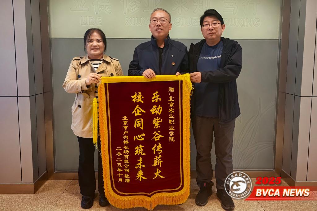 10月15日下午,北京市卢沟桥农场有限公司刘辉场长、卓军梅副书记到校赠送锦旗,对国庆期间我校志愿者在紫谷伊甸园音乐嘉年华志愿服务中的表现给予高度肯定和表扬。