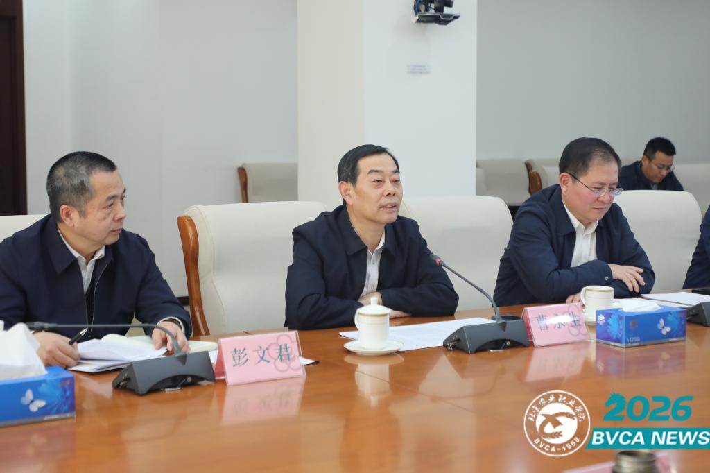 鲁雷对农科院的热情接待表示感谢。他简要介绍了学校的办学历史、专业布局以及在人才培养、社会服务和国际合作等方面取得的成效。他希望双方能够积极构建“优势互补、资源互通、成果共享、长期稳定”的战略伙伴关系,共同为北京都市型现代农业发展贡献力量。丁国亮表示,农科院在前沿技术研发、重大平台建设、顶尖人才集聚等方面具备突出优势,与我校在技能型人才培养、技术推广和社会服务等方面的坚实基础高度互补,可形成彼此支撑、协同发展的合作格局。张晓辉结合职业教育从“层次”到“类型”的转变,介绍了职业教育发展态势,并就进一步深化双方合作提出初步设想。