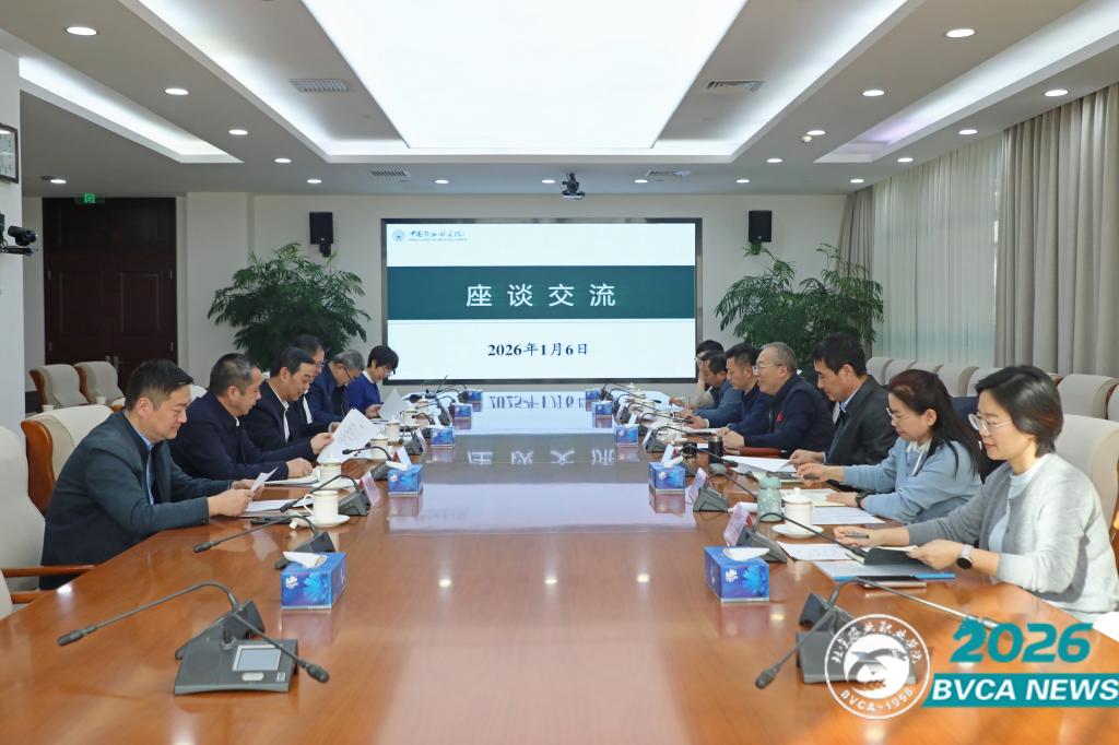 1月6日下午,学校党委副书记鲁雷,党委常委、副院长丁国亮和张晓辉带队到中国农业科学院调研交流,中国农业科学院副院长、党组成员曹永生热情接待并主持召开座谈会。