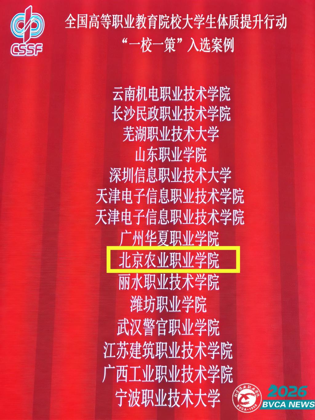 1月7日,在中国学生体育联合会高等职业教育院校工作委员会2025年度工作会议上,我校“奔跑农职 健康领跑”校园马拉松活动成功入选全国高等职业教育院校大学生体质提升行动“一校一策”示范案例,彰显了学校在体育教育改革与学生体质健康提升工作中的成效与示范作用。