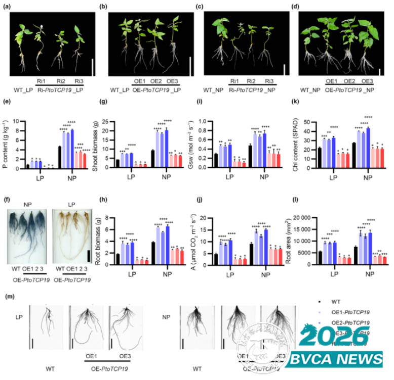 图1PtoTCP19提高杨树低磷耐受性与生物量积累的生物学功能
