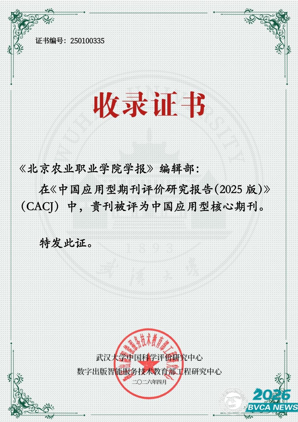 4月10日,《中国应用型期刊评价研究报告(2025版)》正式发布,《北京农业职业学院学报》再次入选农林牧渔领域中国应用型核心期刊。