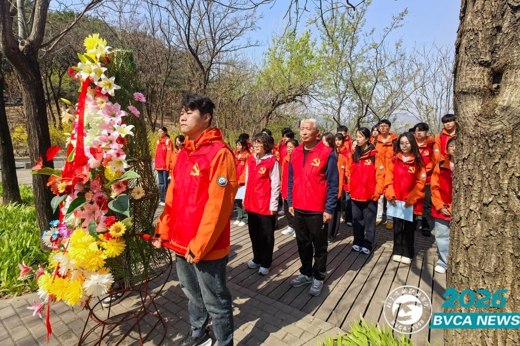 在基地金灯山英烈雕像前,全体人员聆听英烈事迹、敬献花篮并默哀致敬,缅怀革命先烈。