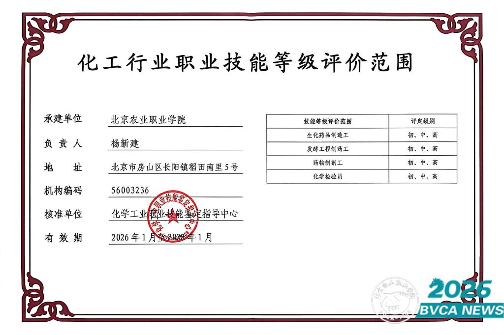 近日,食品与生物工程学院与继续教育学院联合申报的化学检验员、药物制剂工、生化药品制造工、发酵药品制药工四项职业技能等级评价资质,获化学工业职业技能鉴定指导中心批准,为学院“岗课赛证”一体化人才培养提供支撑,助力学生职业发展与学校本科建设。