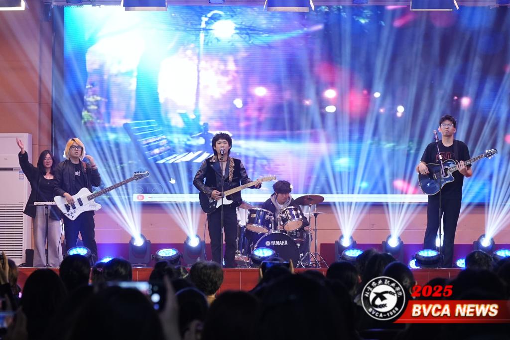 第二篇章“传永·善火不熄”,“双马尾”乐队带来的歌曲串烧《弦音送故启新程》,两首动感曲目瞬间点燃现场氛围。