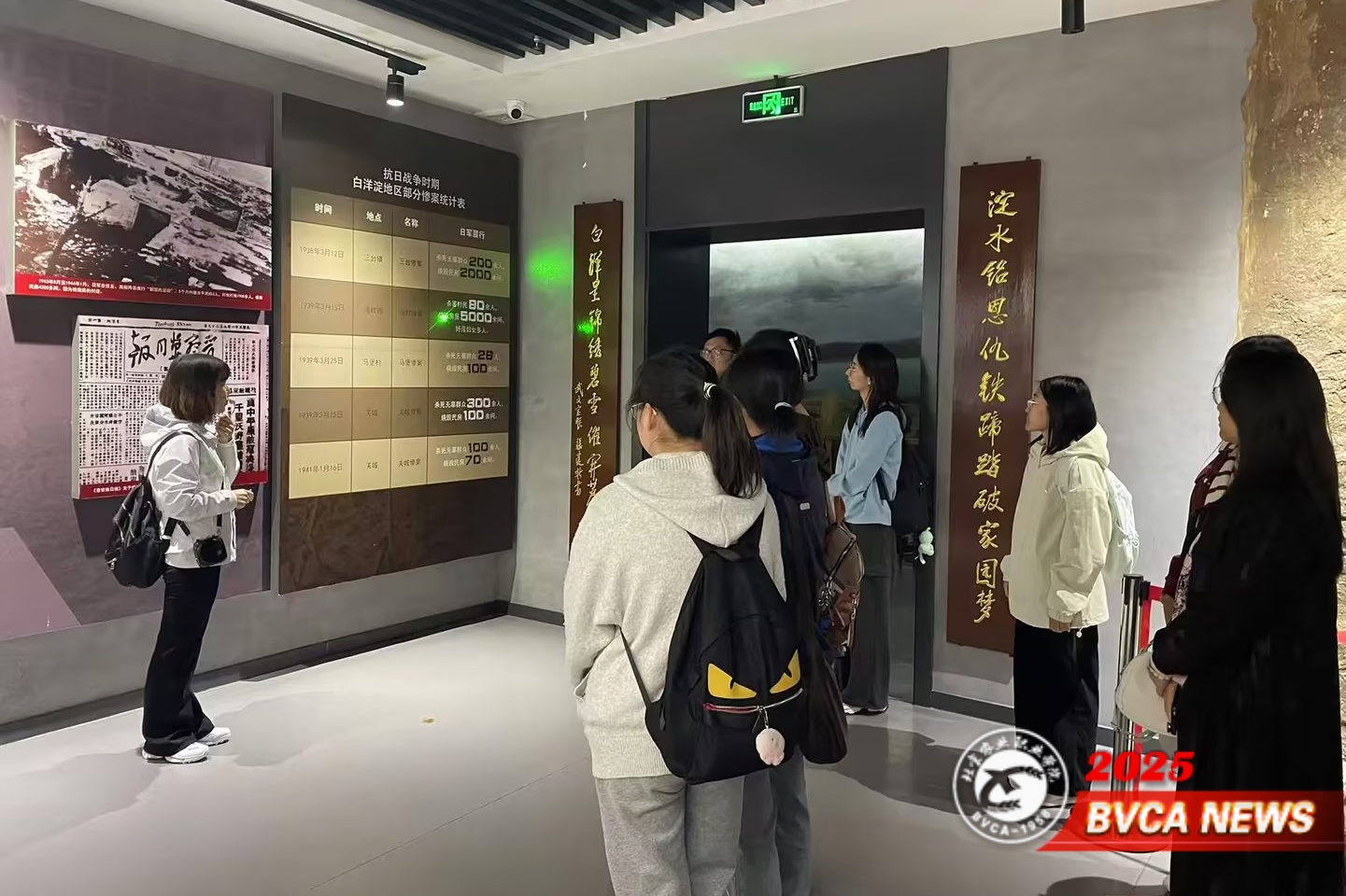 研学首站白洋淀,师生们近距离观察芦苇湿地生态系统,感受白洋淀系统性生态治理成果,这是学习理解习近平生态文明思想的生动案例。离开淀区,师生们抵达雁翎队纪念馆,大家通过聆听雁翎队“水上抗日”的英雄故事,观看珍贵的历史实物和媒体影像,深切感悟了革命先辈英勇无畏,保家卫国的革命精神。在嘎子村了解血肉丰满、性格鲜明的抗日小英雄张嘎的形象,这里还原了战火岁月里军民同心、携手抗敌的热血故事,展现了白洋淀人民在抗战时期的乐观、坚韧和必胜的信念。
