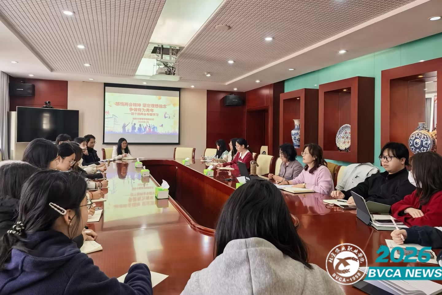 讲座围绕两会基础知识、核心职能、职业教育发展三大维度展开系统讲解。李教授用通俗易懂的语言,清晰阐释了全国人民代表大会、中国人民政治协商会议的性质、地位与核心职能,梳理两会的议事流程与重要意义,帮助团干部构建完整的两会知识体系。结合当前职业教育改革与发展趋势,李教授紧扣政府工作报告中关于职业教育、青年发展、技能人才培养等关键内容,解读国家对职业教育的政策支持与发展部署,引导大家立足专业、勤学笃行,把握时代机遇,成长为高素质技术技能人才。