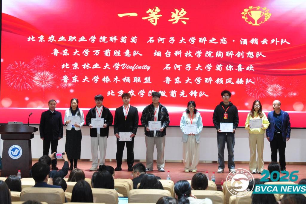 4月12日,“青春正当红・创变新未来”2026年葡果酒产教融合论坛暨首届大学生葡果酒营销创新大赛颁奖典礼在烟台理工学院举办。我校跨专业组建的“醉萄萄”团队,在全国24所高校98支队伍的角逐中脱颖而出,荣获大赛一等奖、全国综合位次排名第一。