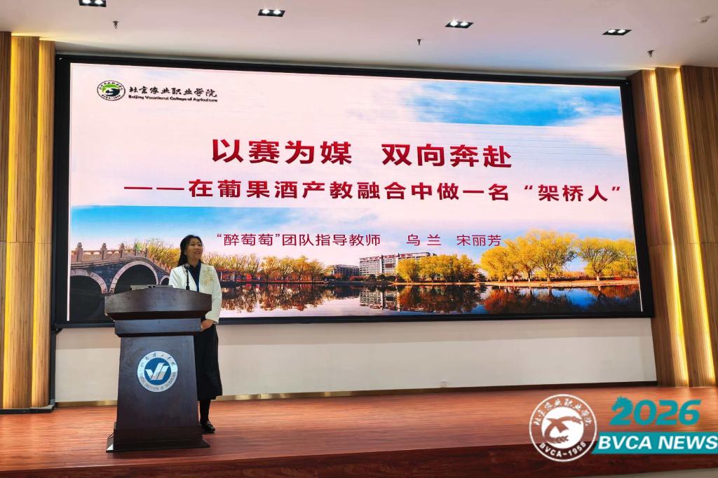 论坛期间,乌兰老师受邀作《以赛为媒双向奔赴——在葡果酒产教融合中做一名“架桥人”》主题演讲。