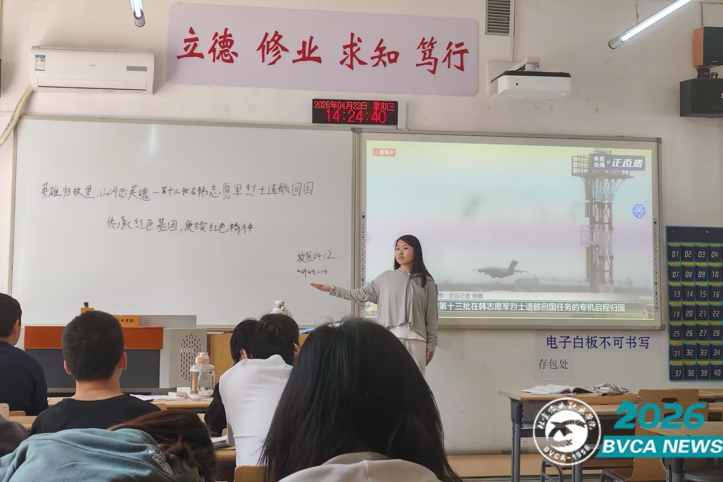 4月22日至23日,学校组织学生观看第十三批在韩中国人民志愿军烈士遗骸归国及安葬仪式直播,见证英烈归国安葬,进一步弘扬伟大抗美援朝精神,传承红色基因、厚植青年学生家国情怀。