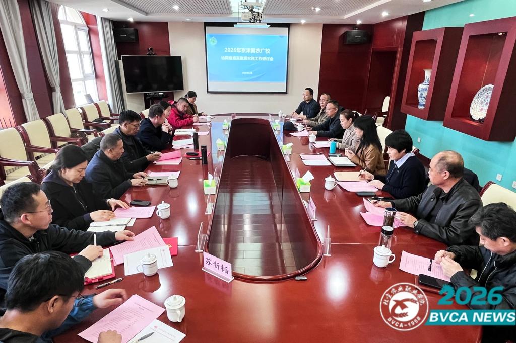 3月19日,2026年京津冀农广校协同培育高素质农民工作研讨会在北京农业职业学院香山校区召开。北京市校校长张新华、河北省校校长马金翠、天津市校副校长杨祺出席,北京市各区分校主要负责人及骨干教师参会。北京市校副校长李桂元主持会议。